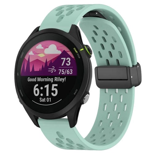 Correa de Silicona para Garmin Forerunner 255 Music con Cierre Magnético Plegable de 22mm (Verde Azulado)