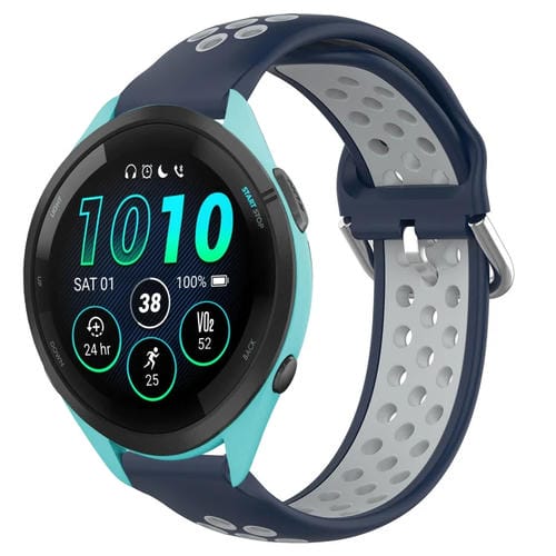 Banda de Reloj Silicona para Garmin Forerunner 265 Music 22mm Deportiva Transpirable (Azul Medianoche + Gris)