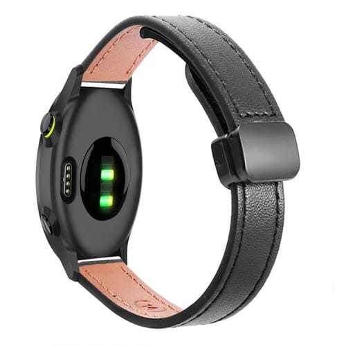 Correa para Garmin Forerunner 55 de Cuero Microfibra 20mm con Hebilla Magnética (Negro)