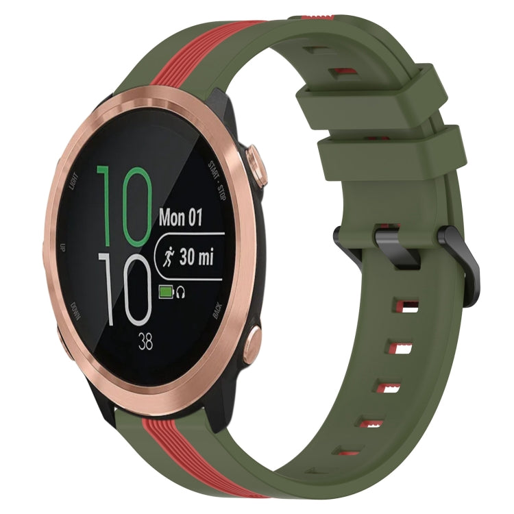 Banda de Reloj de Silicona 20mm para Garmin Forerunner 645 Music Dos Colores Vertical (Verde Militar + Rojo)