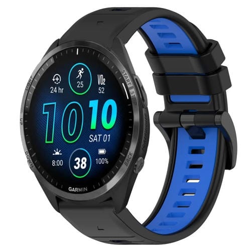 Correa de Silicona Deportiva 22mm para Garmin Forerunner 965 (Negro + Azul)