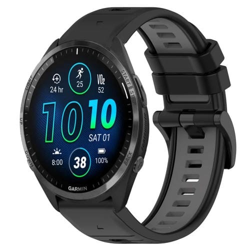 Pour Garmin Forerunner 965 22 mm Sports Bracelet de montre en silicone bicolore (noir + gris)