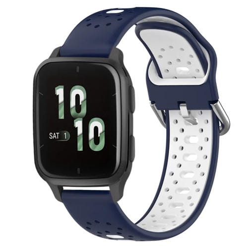 Banda de Reloj Silicona para Garmin Forerunner Sq2 20mm Dos Colores (Azul Medianoche + Blanco)