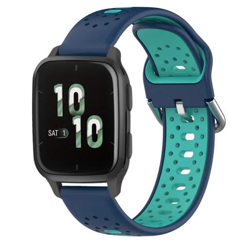 Pour Garmin Forerunner Sq2 20 mm bracelet de montre en silicone respirant bicolore (bleu + bleu sarcelle)