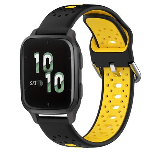 Pour Garmin Forerunner Sq2 20 mm bracelet de montre en silicone respirant bicolore (noir + jaune)