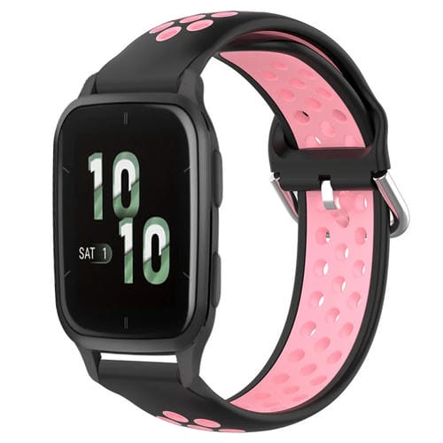 Correa de Reloj para Garmin Forerunner Sq2 20mm Silicona Deportiva Transpirable Perforada (Negro + Rosa)