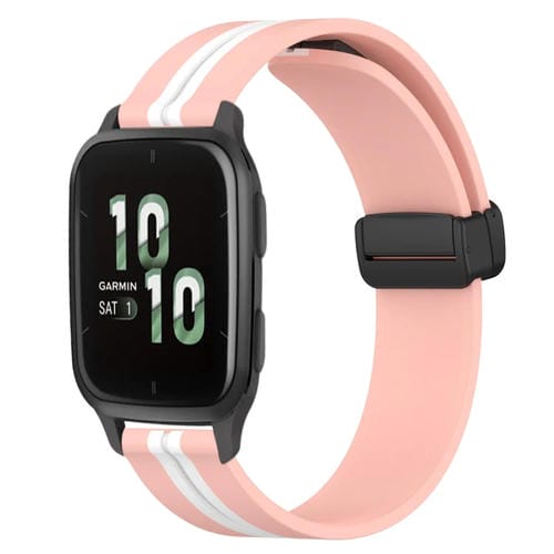 Correa de Reloj para Garmin Forerunner Sq2 20mm Silicona con Cierre Magnético Plegable (Rosa + Blanco)