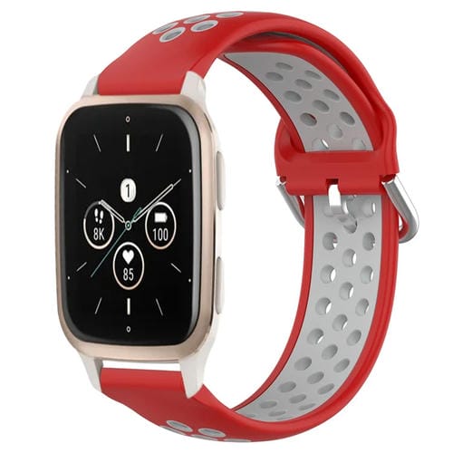 Banda de Reloj silicona deportiva Garmin Forerunner Sq2 Music 20mm transpirable perforada (Rojo + Gris)