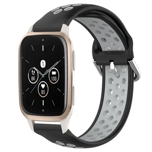 Banda de Reloj Para Garmin Forerunner Sq2 Music 20mm Silicona Deportiva Transpirable Perforada (Negro + Gris)