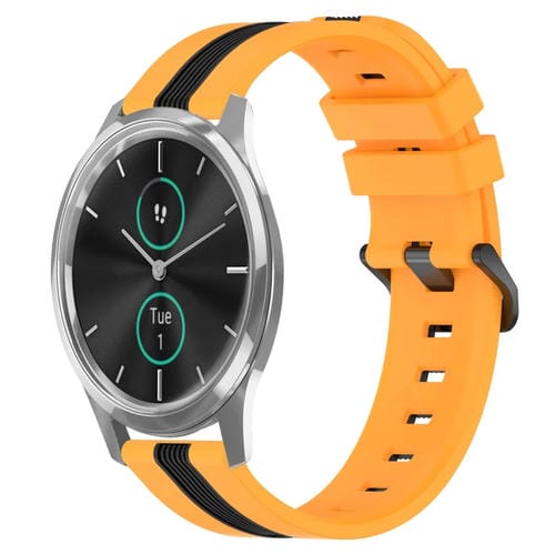Correa de Reloj para Garmin Garminmove Luxe Silicona Dos Colores Vertical 20mm (Amarillo + Negro)