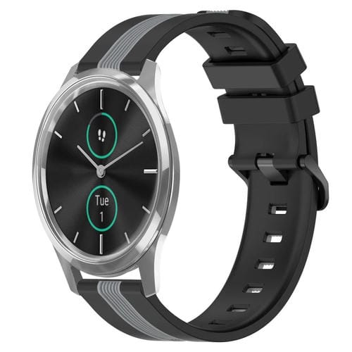 Correa de Reloj para Garmin Garminmove Luxe Silicona Dos Colores Vertical 20mm (Negro + Gris)