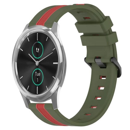 Correa de Silicona para Garmin Garminmove Luxe 20mm Dos Colores (Verde Militar + Rojo)