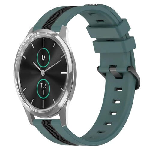 Correa de Reloj para Garmin Garminmove Luxe Silicona Dos Colores Vertical 20mm (Verde + Negro)