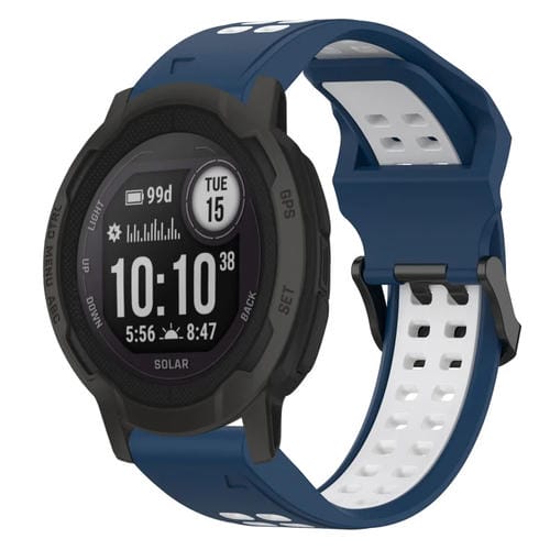 Correa de Silicona para Garmin Instinct 2 22mm con Hebilla Inversa Dos Colores (Azul + Blanco)