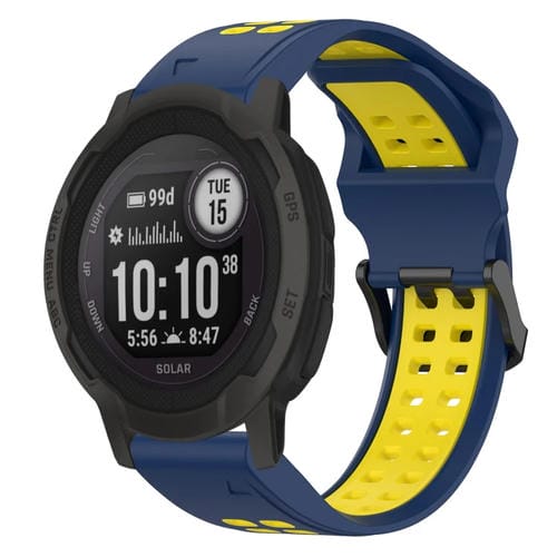 Pour Garmin Instinct 2S 20 mm, bracelet de montre en silicone à boucle inversée bicolore (bleu + jaune)