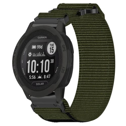 Para Garmin Instinct 2S Correa de Reloj con Cierre de Gancho y Bucle de Nailon de 20mm (Verde Militar)