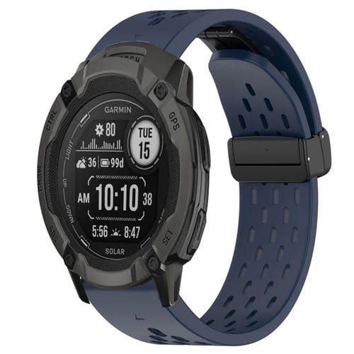 Correa de Silicona para Garmin Instinct 2X Solar 26mm con Orificio y Hebilla Plegable (Azul Medianoche)