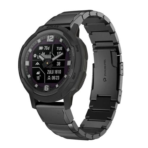 Correa de Reloj para Garmin Instinct Crossover Solar 22mm Acero Inoxidable con Caparazón de Tortuga (Negro)