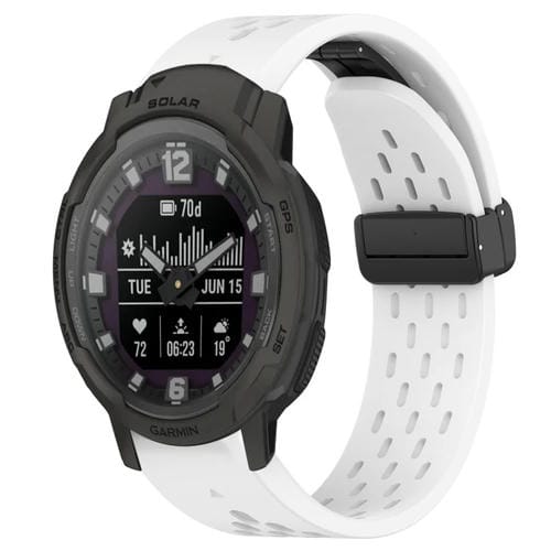 Correa de Silicona para Garmin Instinct Crossover Solar 22mm con Orificio y Hebilla Plegable (Blanco)