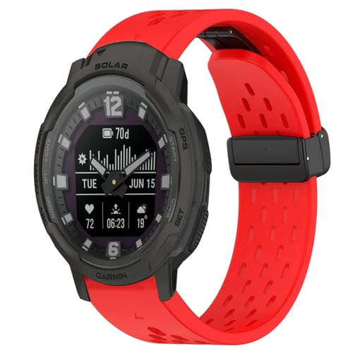 Correa de Silicona para Garmin Instinct Crossover Solar con Hebilla Plegable 22mm (Rojo)
