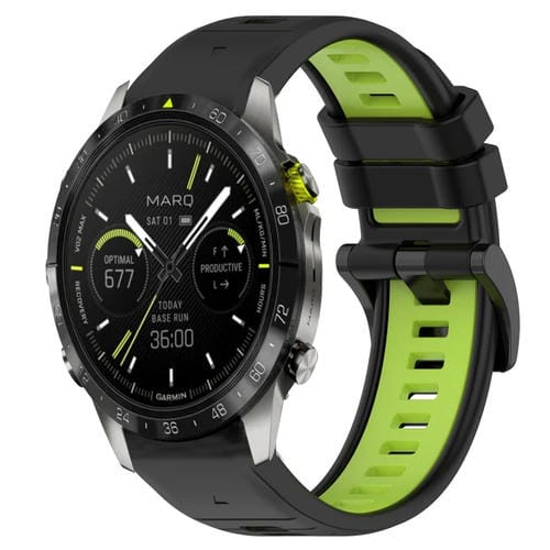 Pour Garmin MARQ Athlete Gen 2 22 mm Sports Bracelet de montre en silicone bicolore (noir + vert citron)