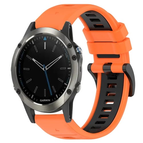 Pour Garmin Quatix 5 22 mm Sports Bracelet de montre en silicone bicolore (orange + noir)
