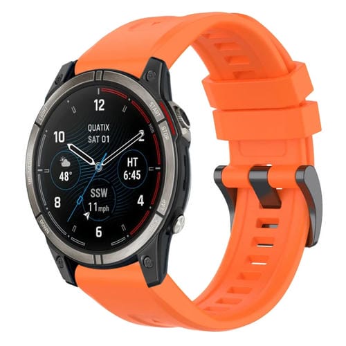 Correa de Silicona para Garmin Quatix 7 Pro con Liberación Rápida y Hebilla Negra (Naranja)