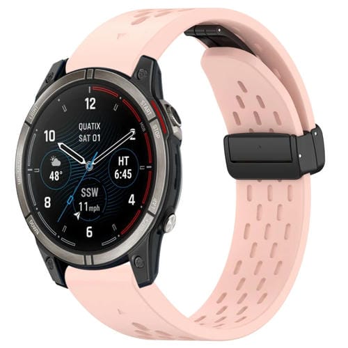 Para Garmin Quatix 7 Pro Correa de Reloj de Silicona con Hebilla Plegable Magnética con Orificios de 22mm (Rosa)