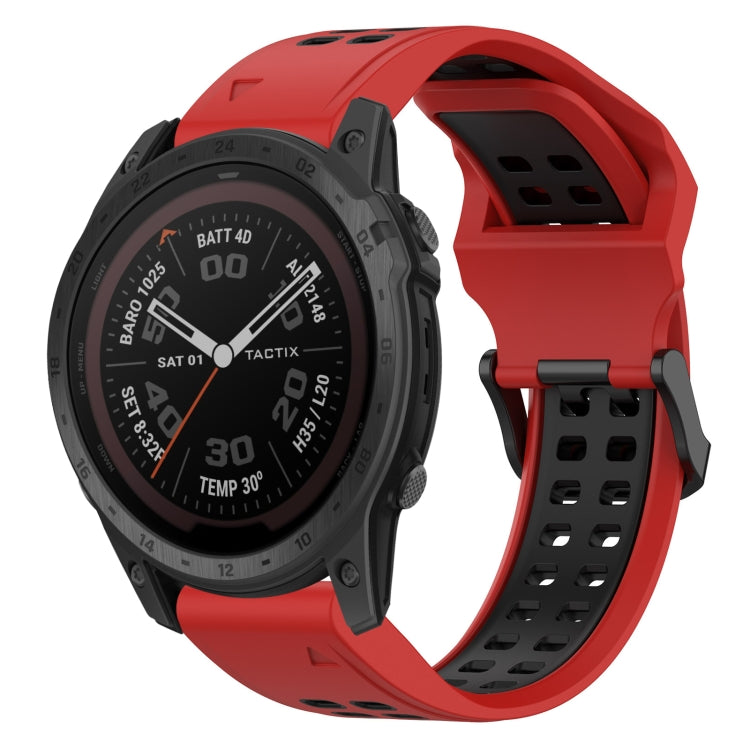 Correa de Reloj Garmin Tactix 7 Pro 26mm Silicona Hebilla Inversa Dos Colores (Rojo + Negro)