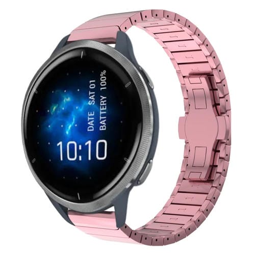 Correa de Reloj para Garmin Venu 2 de Aleación con Hebilla de Mariposa y Pintura de Una Cuenta 22mm (Rosa)