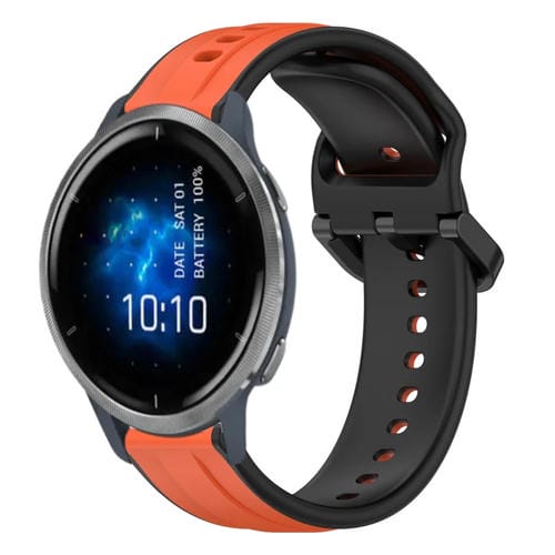 Correa de Reloj para Garmin Venu 2 Silicona Dos Colores Bucle Convexo 22mm (Naranja + Negro)