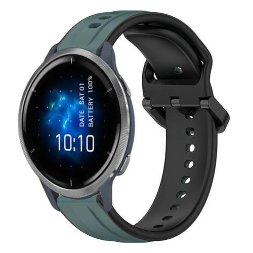 Correa de Reloj para Garmin Venu 2 Silicona Dos Colores con Bucle Convexo 22mm (Verde Oliva + Negro)