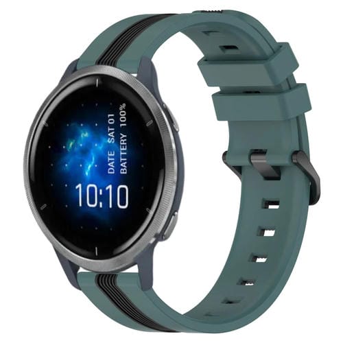 Correa de Reloj para Garmin Venu 2 de Silicona Dos Colores Vertical 22mm (Verde + Negro)