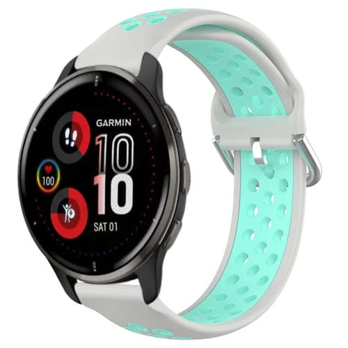 Correa de Silicona Deportiva para Garmin Venu 2 Plus 20mm Transpirable Perforada (Gris + Pato de Agua)