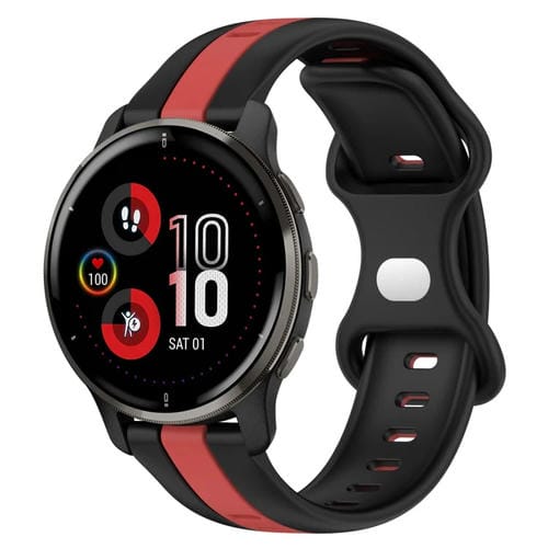 Correa de Reloj para Garmin Venu 2 Plus 20mm Hebilla de Mariposa Silicona Dos Colores (Negro + Rojo)