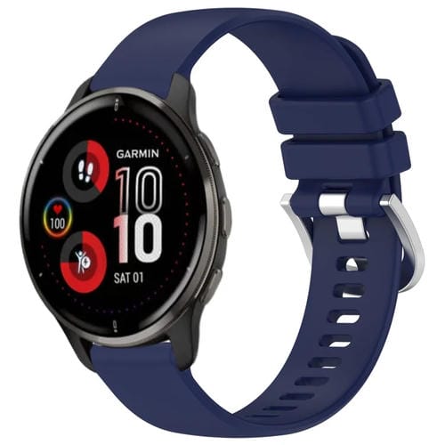 Correa de Reloj para Garmin Venu 2 Plus Silicona con Hebilla Plateada (Azul Oscuro)