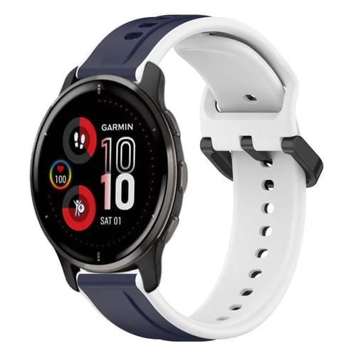 Correa de Silicona para Garmin Venu 2 Plus 20mm Dos Colores con Bucle Convexo (Azul Medianoche + Blanco)