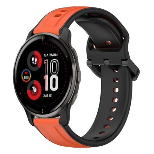 Correa de Reloj para Garmin Venu 2 Plus Silicona Dos Colores Bucle Convexo 20mm (Naranja + Negro)