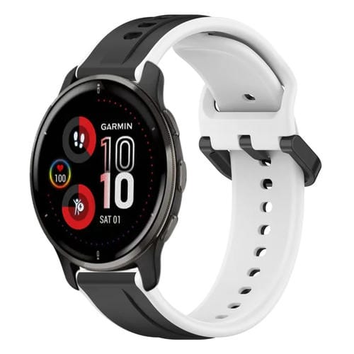 Correa de Reloj para Garmin Venu 2 Plus Silicona Dos Colores con Bucle Convexo 20mm (Negro + Blanco)