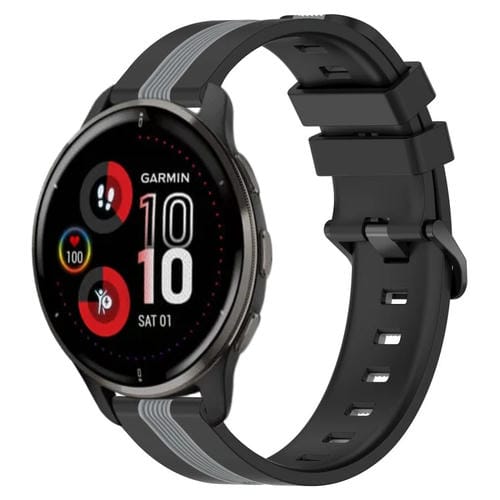 Correa de Reloj para Garmin Venu 2 Plus de Silicona Dos Colores Vertical 20mm (Negro + Gris)