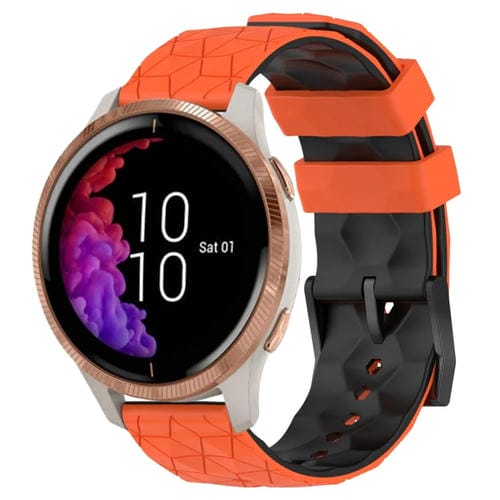 Banda de Reloj Garmin Venu 20mm Patrón de Fútbol Silicona Dos Colores (Naranja + Negro)