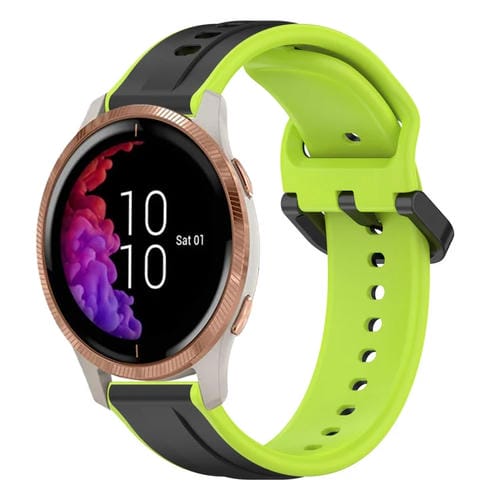 Correa de Reloj Silicona para Garmin Venu 20mm con Bucle Convexo (Negro + Lima)