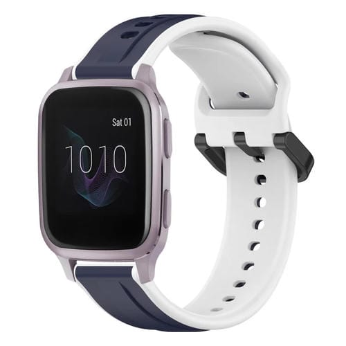 Correa de Reloj para Garmin Venu Sq de Silicona Dos Colores Bucle Convexo 20mm (Azul Medianoche + Blanco)