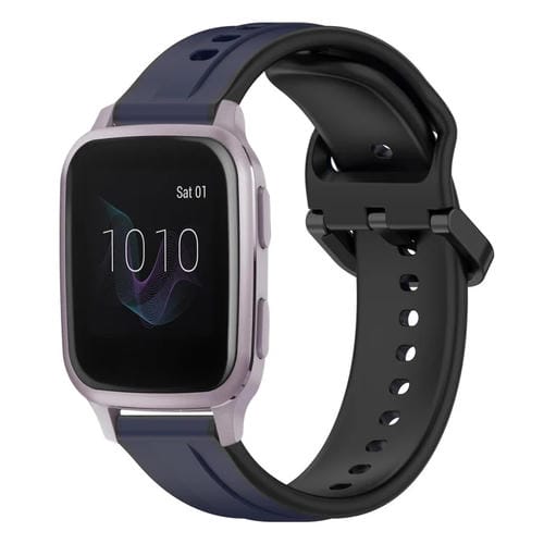 Correa de Silicona para Garmin Venu Sq 20mm con Bucle Convexo (Azul Medianoche + Negro)