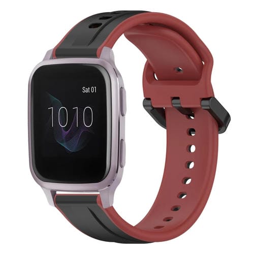 Correa de Silicona para Garmin Venu Sq 20mm con Bucle Convexo (Negro + Rojo)