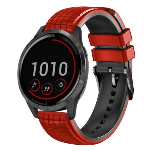 Pour Garmin Vivoactive 4 Bracelet de montre en silicone bicolore en maille de 22 mm (noir rouge)