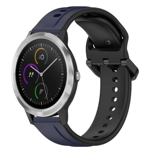Correa de Silicona para Garmin Vivoactive3 20mm con Bucle Convexo (Azul Medianoche + Negro)
