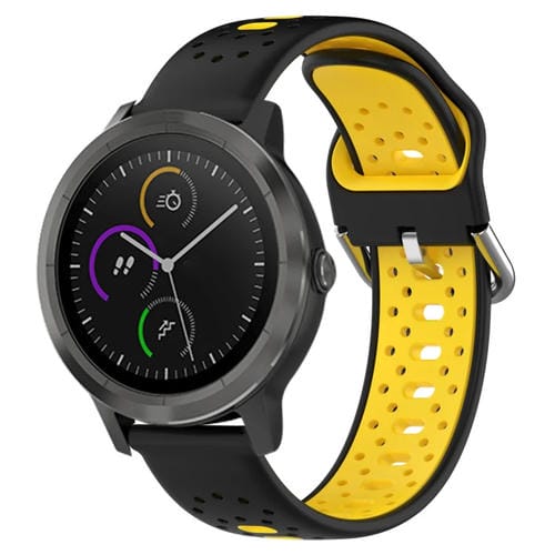 Correa de Reloj para Garmin Vivoactive3 Silicona Transpirable Dos Colores 20mm (Negro + Amarillo)