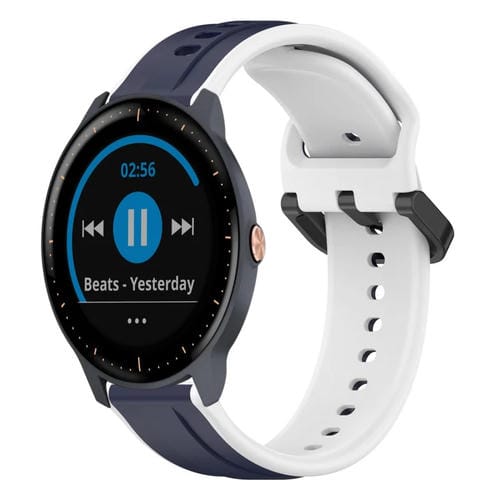 Correa de Silicona para Garmin Vivoactive3 Music 20mm con Bucle Convexo (Azul Medianoche + Blanco)