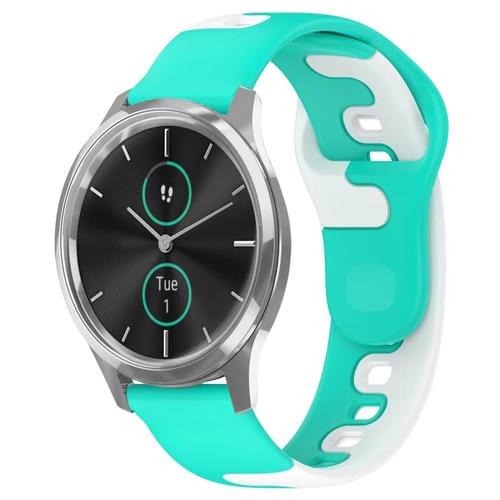 Correa de Silicona para Garmin Vivomove Luxe 20mm Doble Color (Cian + Blanco)